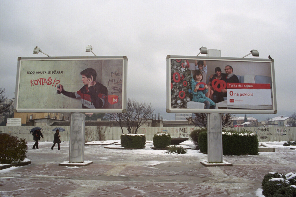 Rather than engage directly with the painful story of the war and division, and the personal experiences still lived in the city (a perfectly valid and normal approach to take); he decided to try using it as a platform on which to visualise critical concepts of nationalism. The main theme he addressed with varying degrees of success was how in the name of protecting cultural traditions, the homogenising force of nationalism and the modernising drive to compete in capitalist markets in fact destroys the very values and way of life the nationalists claimed to protect. Leaving society valueless, a position from which individuals must by derive meaning from flag-waving and commercialism.