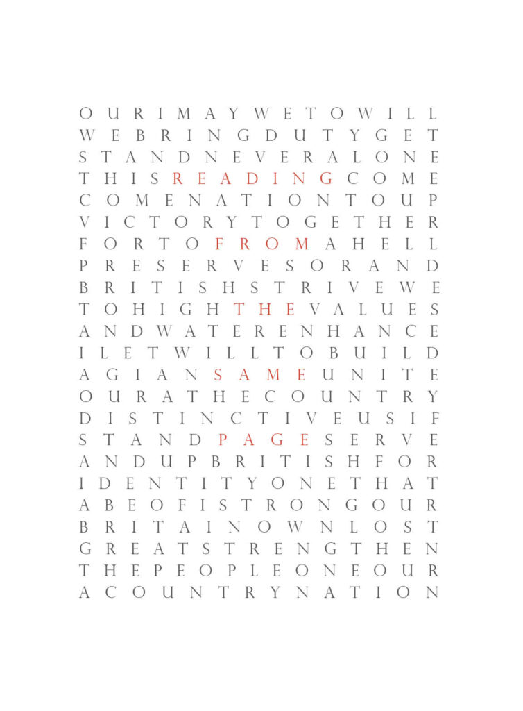 Páraic produced a set of artist books: Ar Kay Dee (2011), Prayers of a Nation (2012), Notes on British Nationalists (2012) and Reading from the Same Page (2012). As the course progressed the purpose of each book became the semiotic analysis nationalist language. Not in its overtly xenophobic form, rather the seemingly innocent mundane rhetoric of mainstream politicians between the end of the cold war and the financial crash of 2008. The fact that so much mainstream political rhetoric in 2025 is overtly xenophobic, demonstrates how nationalism in its banal form is merely a sleeping beast. The language conditions a significant proportion of the population, they are in effect primed to embrace its more exclusionary, violent form whenever the political moment demands.